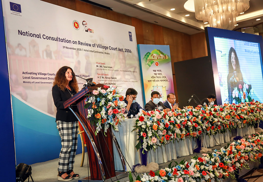 EU Ambassador and Head of Delegation to Bangladesh Rensje Teerink speaking at a Consultation Workshop to review Village Court Act 2006 held on 29 November 2020 at a local hotel.
